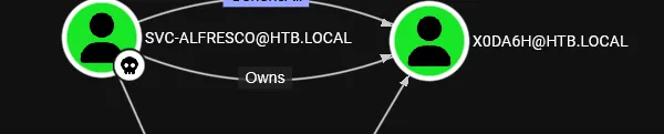 svc-alfrescois AS-REP roastable, capture hash withGetNPUsers, and crack it - leverage ownership relation between