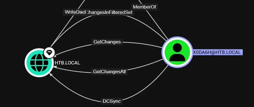 X0DA6H, map BloodHound paths, perform DCSync attack and obtain Administrator hash