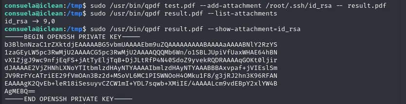 As we can add attachment and run qpdf as sudo, simply add the root ssh key into a pdf file using qpdf.