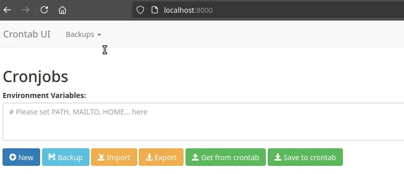 - Access cronjob management service running on PORT 8000 via SSH port-forwarding.