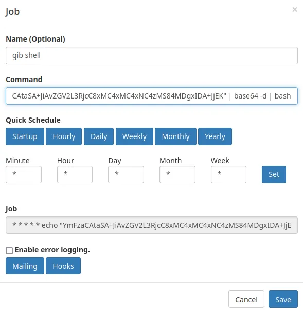 - Creatr a malicious cronjob to trigger a reverse shell and escalate to root.