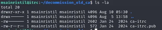 support@ssg:/etc/ssh/auth_principals$ ls -latotal 20drwxr-xr-x 2 root root 4096 Feb 8 2024 .drwxr-xr-x 5 root root 4096 Jul 24 12:24 ..-rw-r--r-- 1 root root 10 Feb 8 2024 root-rw-r--r-- 1 root root 18 Feb 8 2024 support-rw-r--r-- 1 root root 13 Feb 8 2024 zzinterfor zzinter
